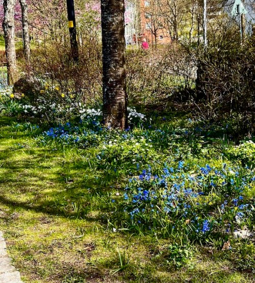 Nära det gula huset i Suseboparken som rymmer ungdomsgården Vega, finns en rosengård med buskar som blommar från maj med ett par tidiga rosor och sedan överraskar med flera sorter i juni och juli. Jag vet inget om rosorna, när de planterades eller av vem, kan de ha blivit kvar från Optimustiden för intresset från kommunens trädgårdsavdelning känns svalt eller saknas.