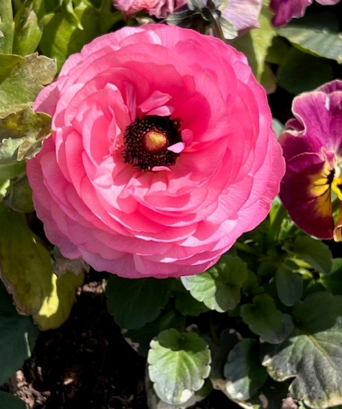 Den röda har många små enkla blommor och ser ut som en morsdagsros som fått mer plats och år på sig att växa, än att bara leva en säsong i en kruka.