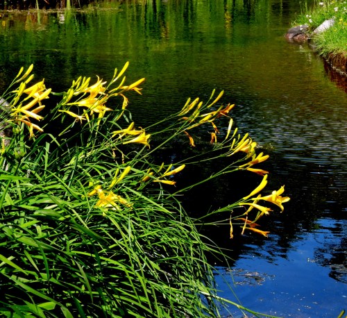 Den här dagen frestas jag att gå in i Viktoriahuset och även här är det midsommar, med blommor på vattnet.