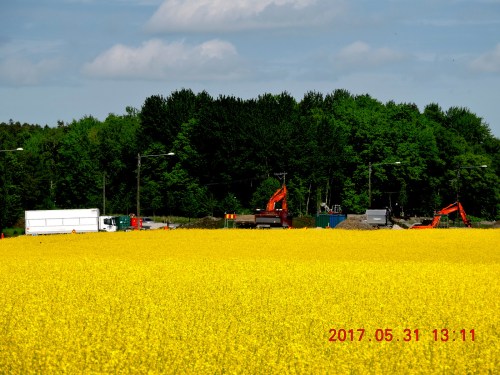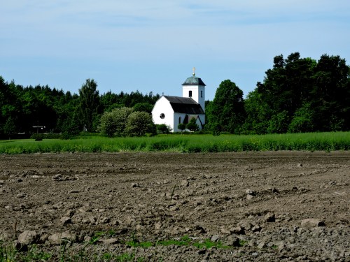 Vid kyrkan har vi bilen parkerad. Rapsen på bilden är nu helt överblommad.