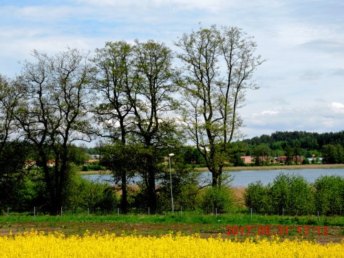 Vi går vägen mellan Eds kyrka och Prästgårdsmarken utmed Edssjöns norra sida. För ett par veckor sedan blommade rapsfältet knallgult just nedanför kyrkan.