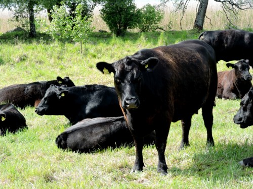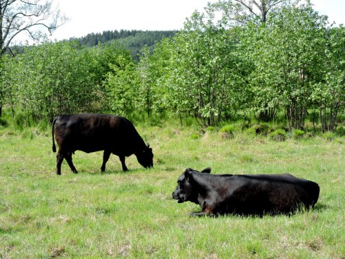 Nej det är mörkbrunsvarta djur med korta ben, utan horn och med diande kalvar, vad kan det vara? Letar på nätet och det närmaste jag kommer är Dexter, en irländsk ras som ger god mjölk och gott kött. hoppas jag hittat rätt.