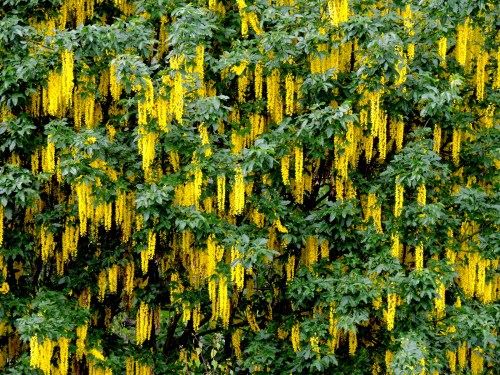 Det är gullregn, men aldrig förr har jag känt gullregnsdoft så ! Busken har funnits där alla de år vi bott här och vi hade också gullregn i vår trädgård men då kände jag inte den förföriska doften som nu. Vi kanske inte varit här just när den blommar, vi har nog lämnat Väsby om somrarna.