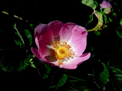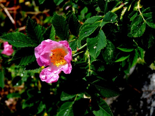 Stigen utmed Brunnsviken vaktas av nyponrosor och de alldeles nyutslagna
