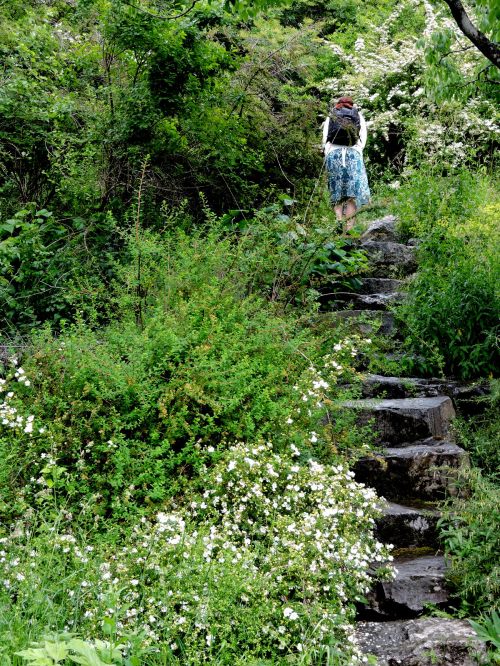 Jag väntade ut ett ösregn och sen kom solen igen och eftersom jag sneglat upp mot fjälltopparna och sett att de börjat blomstra igen tänkte jag försöka ta mig upp, det är nog 70 år sedan jag senast klättrade där och det finns ju trappsteg.