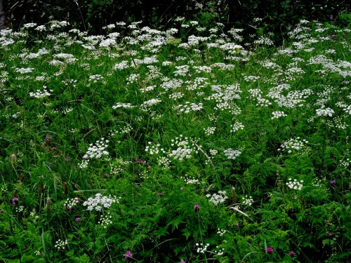 Utmed de lägre områdena är det full fart på den grönska som Nils-Erik Landell gillade, balkantistlarna eller bolltistlarna. De är ännu bara grönbladiga men ser ut att inta all mark de kan.