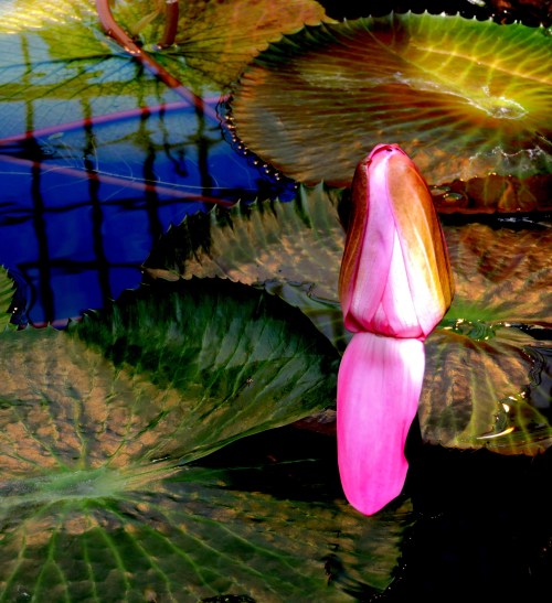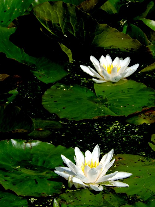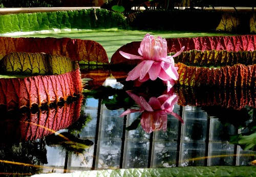 Inte långt från Viktoriahuset ligger utomhusdammarna. Jag måste se hur det gått för sothönan som låg i sitt fina bo en bit ut i vattnet sist jag var här. Det syntes inte ett spår av boet och två sothöns simmade och dök i dammen som om inget hänt. Vattenytan är nu täckt av röda och vita näckrosor.