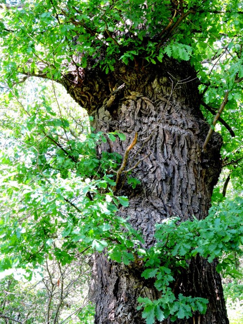 Ekar är svåra att fotografera, man tappar andan av deras storlek men på bild blir de bara som ordinära träd. Går man sedan ensam så har man ingen att ställa upp bredvid för att få ett mått på deras omfång. I den här parken var många ekar mycket raka och stiliga men ändå med en stor omkrets, inte så många var spöklika som de ofta är där det haft det jobbigt eller blivit knaprade på som unga.