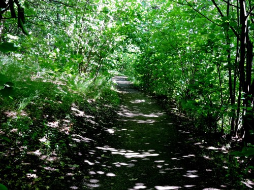 En stig går utmed stranden i Pipers park, mycket gröna löv fladdrar oroligt i blåsten och på ena sidan har man vatten och andra sida ett lövklätt berg med stigar rätt upp som jag avstår från att gå.