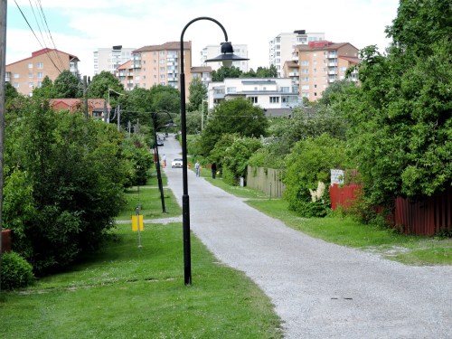 Äventyr – som att leta i ett främmande land efter något man läst om. Svängde av mot Bergshamra och in bland husen men med kompassen riktad mot vattnet och efter Bergshamra allé korsade jag Tivolivägen och förstod att det var den jag måste gå och jag lyckades hitta en parkeringsplats. Tivolivägen går in i ett koloniområde med gedigna stugor och uppväxta trädgårdar och en stor skylt visar området och var sevärdheterna går att hitta.