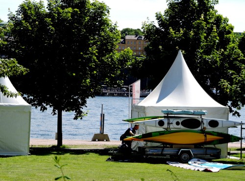 Niki de Saint Phalles och Jean Tingelys skulpturer såg lite vilsna ut idag, hela Skeppsholmen möblerades för en skeppsmässa och toppiga tält växte upp på nästan alla lediga grönytor.