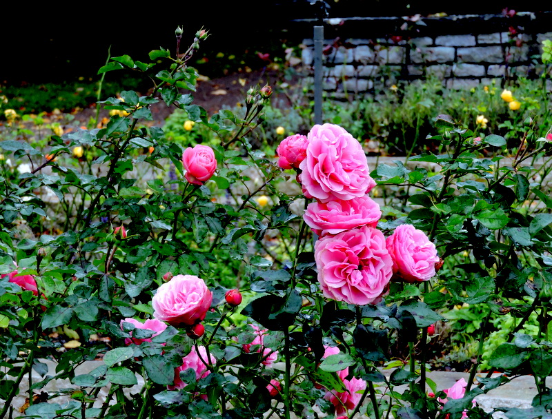 Trästöden för stenarna hade blivit gråsvarta sedan de sattes upp så de syntes knappt. Jag samlade ihop allt från stentvätten och såg att det lyste inne i kyrkan och gick in.