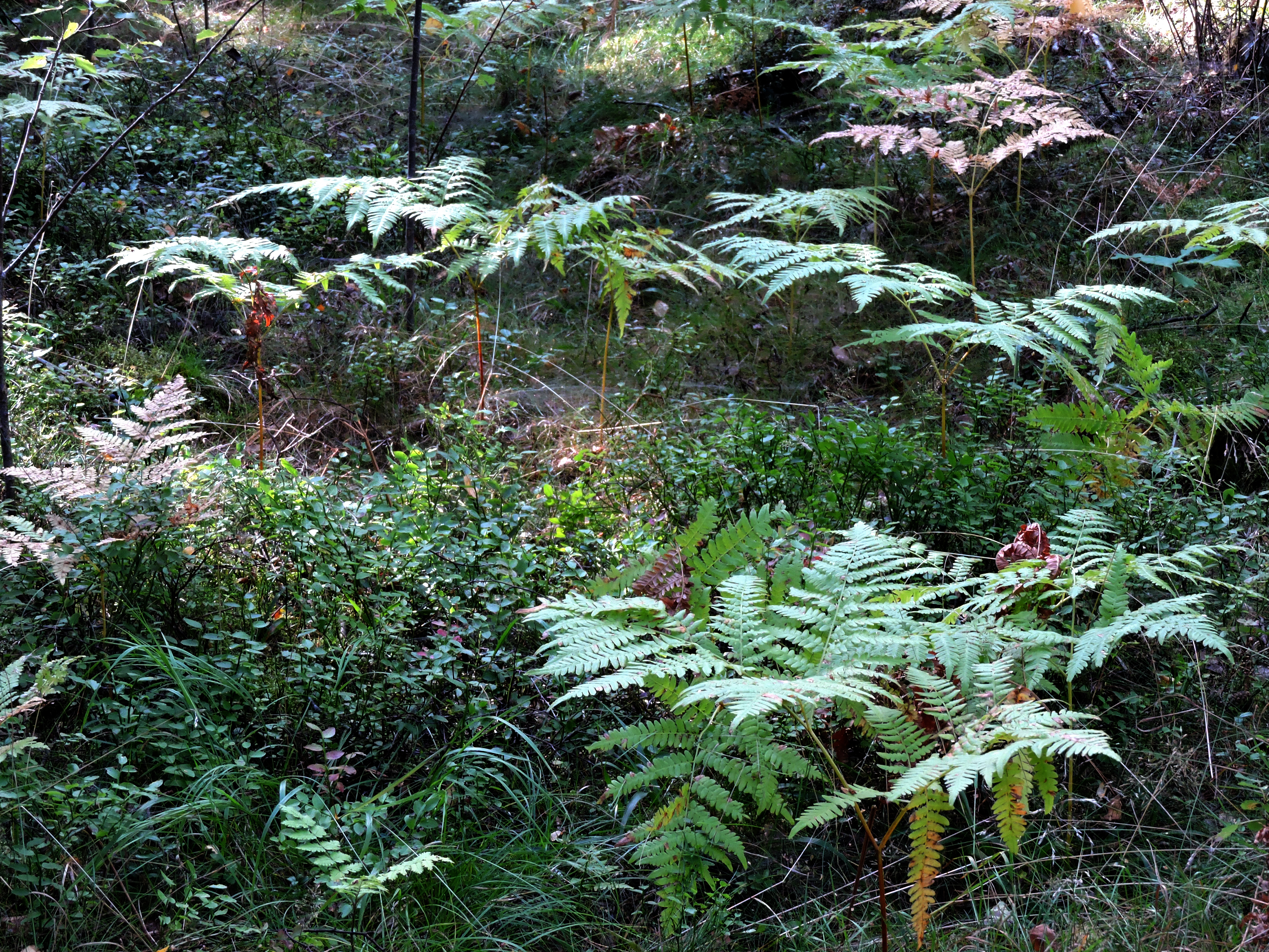 På alléns andra sida är nu en knallgrön nyklippt slänt som lutar ner mot den hårt trafikerade Roslagsutfarten. Slänten övergår fortfarande i en tvärbrant mot norr som avslutas med ett spjälstaket och den rufsiga, skräpiga marken ser ut som för 70 år sen och löktraven står där och lyser ljusgrön. Man hade nog använt branten som sopnedkast under många år för jorden är mullig och mjuk.